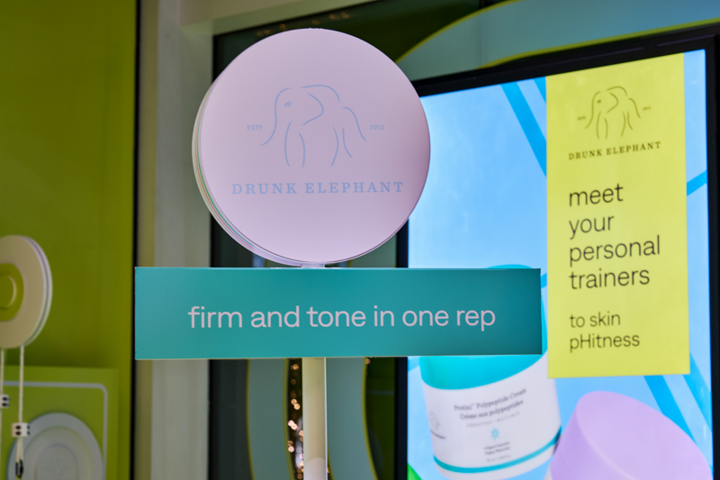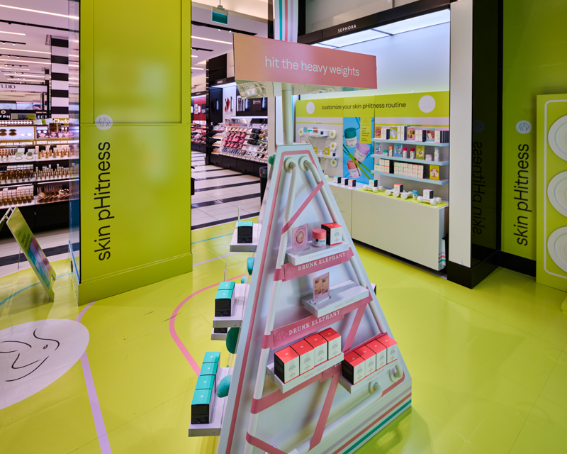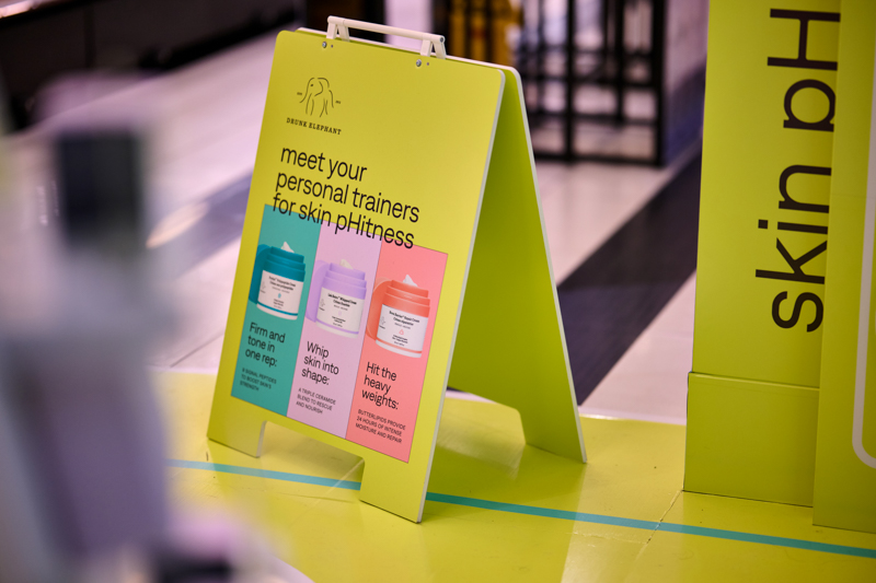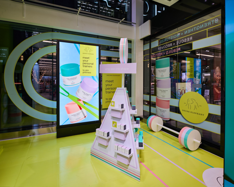 DRunk elephant PHOTOS shomi! partnered with Park Creative Studio to build Drunk Elephant’s workout-inspired pop-up, turning skincare discovery into an interactive, gym-themed experience across 8 Sephora stores.